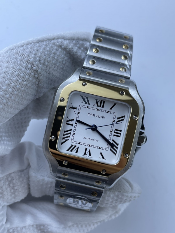 (준비완료/특급배송)NO.1934/BV공장 까르띠에 산토스 2018 미디움 스틸 옐로우골드콤비 화이트다이얼 스마트링크 브슬 35MM